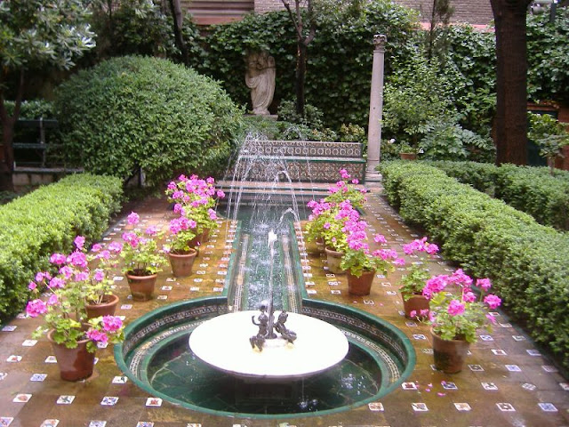 El jardín será uno de los rincones preferidos del artista. Sus esculturas clásicas, la frescura y musicalidad de sus fuentes y los vivos colores de azulejos y vegetación hacen de este, un pequeño paraíso en la gran ciudad.