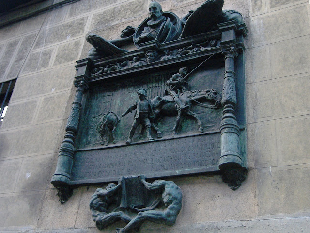 Placa conmemorativa donde estuvo la imprenta de Juan de la Cuesta en la calle Atocha, donde vio la luz Don Quijote de la Mancha en 1605.