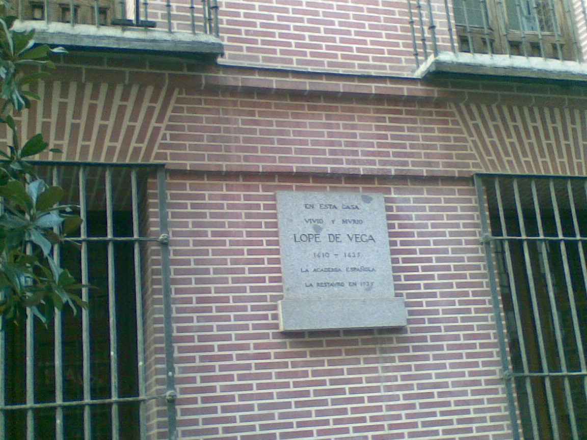 Frente al Convento de las Trinitarias, haciendo esquina con la calle Lope de Vega, se encuentra esta placa en la que se puede ver, que vivió D. Francisco de Quevedo y Villegas.