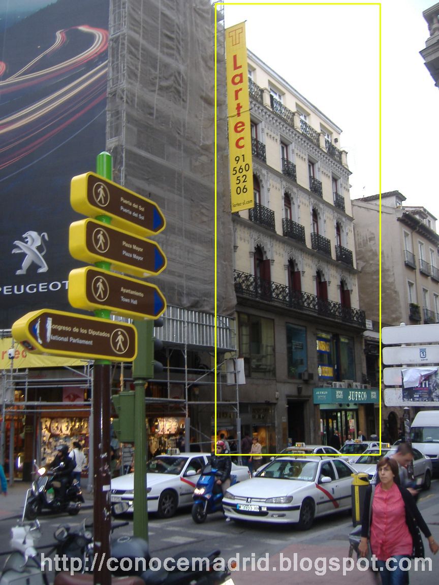 En la Carrera de San Jerónimo, 18 semiesquina a la Plaza de Canalejas se encuentra el edificio de la sastrería de Tomás Isern que encargó el proyecto al arquitecto Francisco de Cubas, Marqués de Cubas que lo construyó en 1865 para instalar su negocio en la planta baja y principal y en la planta alta la vivienda.