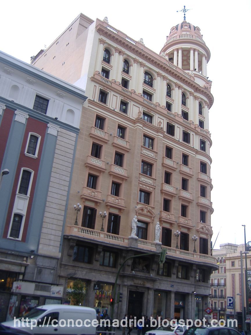 Gran Vía, 39 y la Plaza del Callao Edificio La Adriática, del arquitecto Luis Sainz de los Terreros Gómez, construido entre 1926-1928.