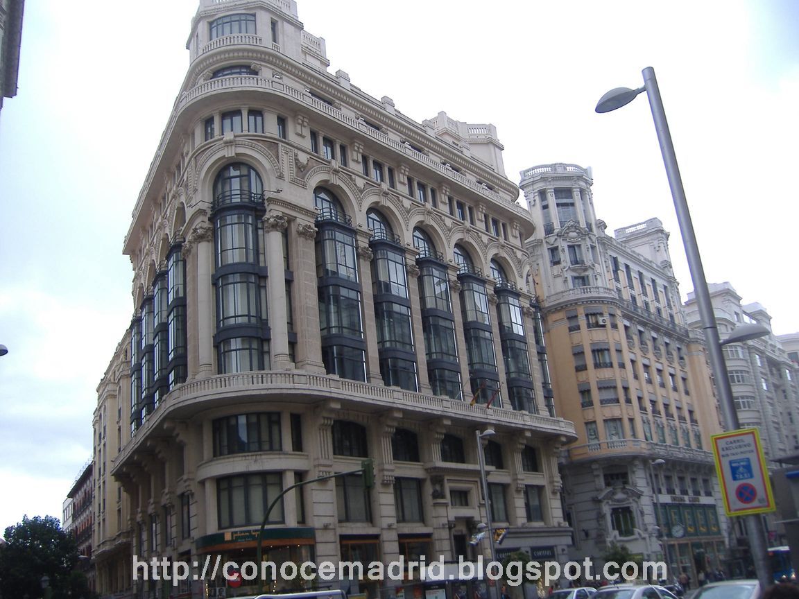 Gran Vía, 32 Grandes almacenes Madrid París. Es el segundo gran almacén que se abrió en la Gran Vía. Su construcción comienza en 1920 hasta 1924, sufriendo varias reformas.