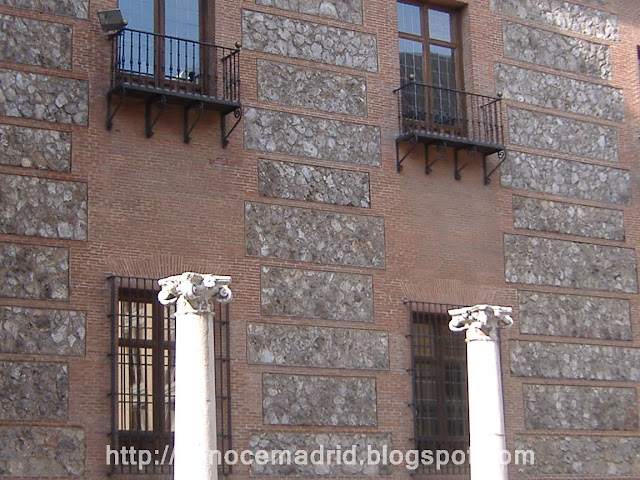 Casa de las Siete Chimeneas, situada en la Plaza del Rey. La mandó constuir Pedro de Ledesma. Se atribuye el diseño a Juan Bautista de Toledo y la autoria material, a su ayudante, Juan de Herrera, entre 1574 y 1577. Estuvo ocupado entre otros por: el conde duque de Olivares, el marqués de Esquilache, Manuel Godoy, etc.