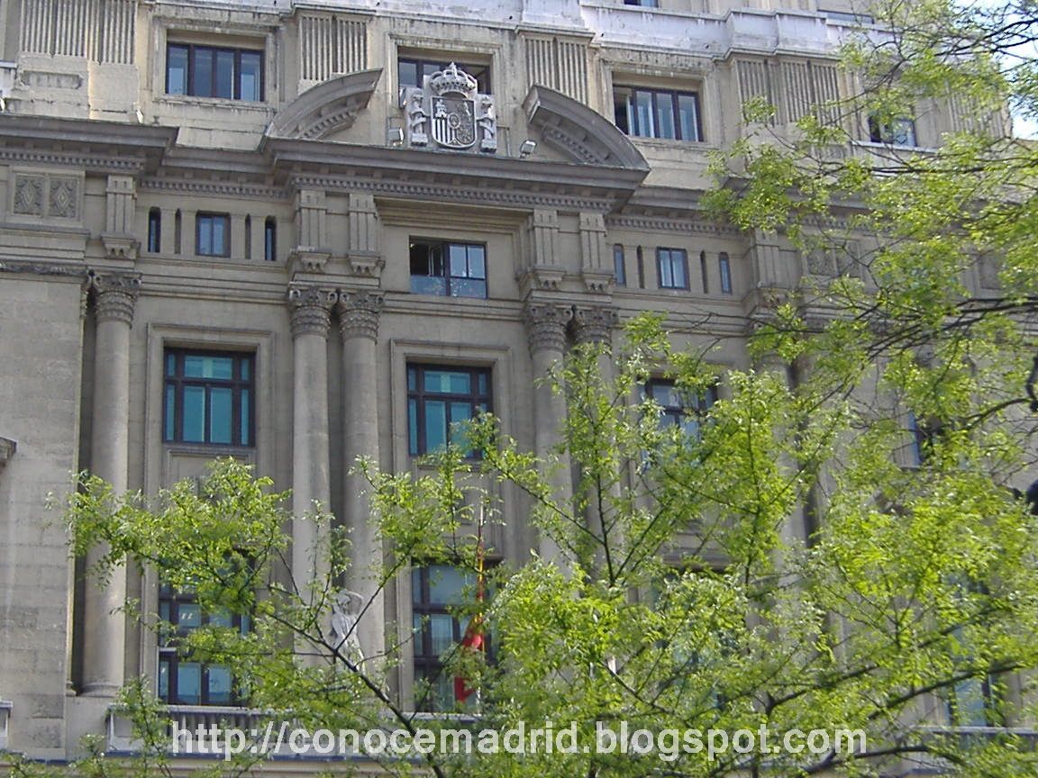 Calle de Alcalá, 48. Banco de España. En 1882 el rey Alfonso XII colocó la primera piedra de las obras, que se prolongaron hasta 1881, se realizaron siguiendo el proyecto de Eduardo Adaro y Severiano Sainz