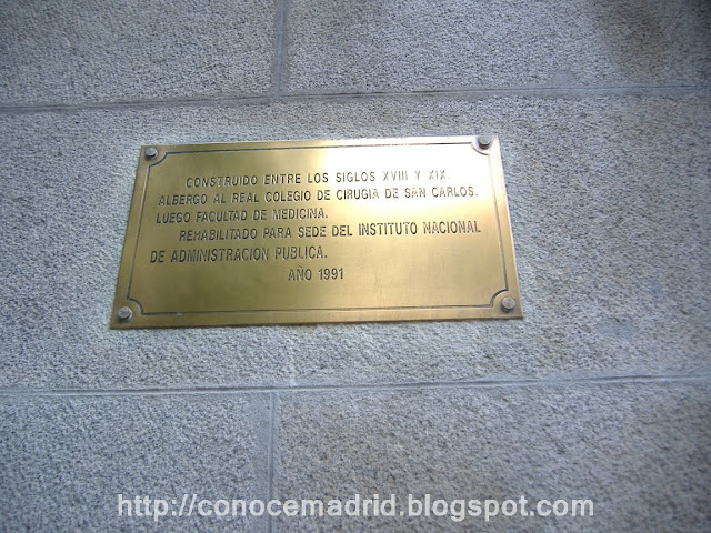 Real Colegio de Medicina y Cirugía de San Carlos. Este edificio ya ha sido mostrado fotos atrás, en concreto la entrada delantera por la calle Atocha. En este caso, se muestra la fachada trasera en la calle Santa Isabel.