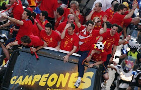 A su llegada a la capital española, la selección de futbol del mundial, ha sido homenajeada con un recorrido en autobús descubierto por el centro de Madrid. La comitiva salió del palacio de la Moncloa, discurriendo por la calle Princesa, plaza de España, Gran Vía, Cibeles, Neptuno, Atocha, ronda de Atocha, ronda de Valencia, Embajadores, ronda de Toledo, Puerta de Toledo, Gran Vía de San Francisco, Bailén, plaza de España y glorieta de San Vicente, concluyendo el paseo en la explanada del Puente del Rey junto al río Manzanares.