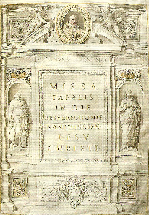 Misal con la misa de Pascua de Resurección de Urbano VIII. Toledo Biblioteca Capitular. Cabildo Primado. Frontispicio con el retrato de Urbano VIII, Antonio María Antonozzi.