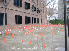 Disposición semiuniforme de banderolas, simulando un jardín de adelfas.