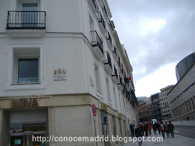 Edificio Groupama Seguros, antiguo edificio Plus Ultra. El reloj con carillón que hay en el chaflán del edificio, todos los días, a las 12 y las 7 de la tarde, dan las horas unas figuras mecánicas que representan a Carlos III, la duquesa de Alba, Goya, una Maja y el torero Pedro Romero, diseñadas por Antonio Mingote.