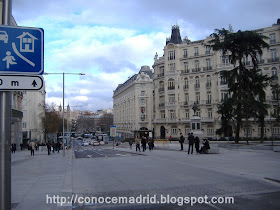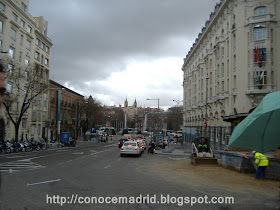 Plaza de las Cortes, al fondo la fuente de Neptuno.