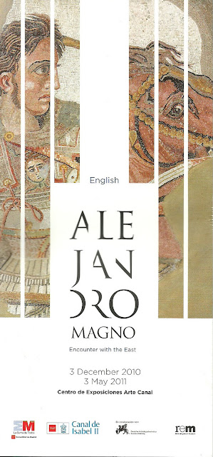 Entre los objetos que se incluyen en el catálogo de la exposición se cuenta el famoso mosaico de la batalla de Iso, en la que Alejandro se enfrentó a Darío. La pieza procede de la casa del Fauno de Pompeya y se expone habitualmente en el Museo Arqueológico de Nápoles. También se han incorporado los últimos hallazgos de las más recómnditas regiones de Asia, como los objetos del Museo Nacional de Tayikistán e incluso, de zonas en situación tan delicada, como las cedidas por el Museo Nacional de Kabul, en Afganistán. Todos estos tesoros se exponen junto a un conjunto de esculturas, bronces, armas de su ejército, monedas de los distintos pises, cerámicas, textos en las más diversas lenguas y escrituras de la época, etc.