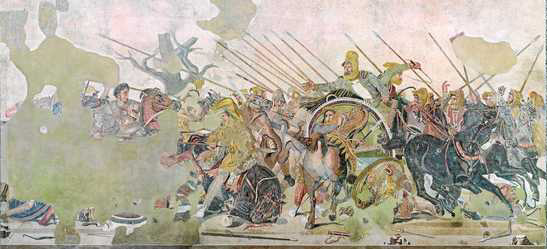 Entre los objetos que se incluyen en el catálogo de la exposición se cuenta el famoso mosaico de la batalla de Iso, en la que Alejandro se enfrentó a Darío. La pieza procede de la casa del Fauno de Pompeya y se expone habitualmente en el Museo Arqueológico de Nápoles. También se han incorporado los últimos hallazgos de las más recómnditas regiones de Asia, como los objetos del Museo Nacional de Tayikistán e incluso, de zonas en situación tan delicada, como las cedidas por el Museo Nacional de Kabul, en Afganistán. Todos estos tesoros se exponen junto a un conjunto de esculturas, bronces, armas de su ejército, monedas de los distintos pises, cerámicas, textos en las más diversas lenguas y escrituras de la época, etc.