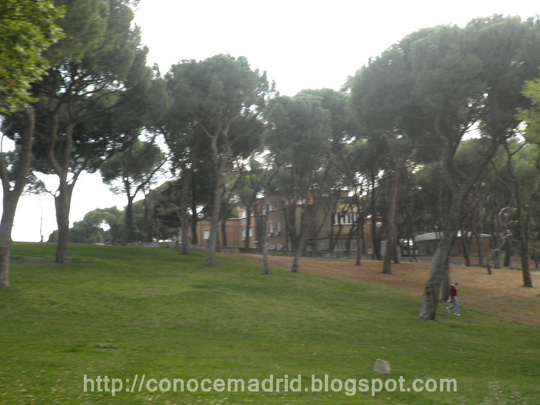 Vista desde el Cerro de las Balas, o de los Locos, del antiguo Colegio de Huérfanos de Ferroviarios construido por Francisco Alonso Martos en 1930, que fue remodelado en 1967. Ampliado hace unos años, actualmente alberga los Órganos de Gobierno y Corporativos de la Asociación CHF y tiene parte cedida a la Universidad Antonio de Nebrija, y otra a la Fundación San Pablo - CEU, a la Residencia de Estudiantes Antonio Gistau y a la Residencia de la 3ª Edad Rafael Alberti.