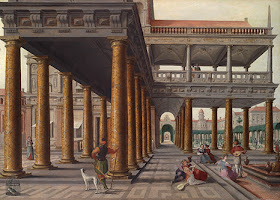 Arquitectura fantástica con personajes. Hans Vredeman de Vries (Leeuwarden, 1527-Amberes (?), 1606)