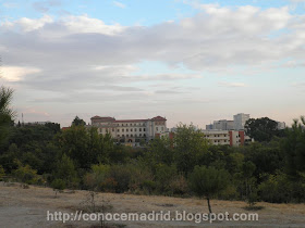 Vista desde el Cerro de las Balas, o de los Locos, del antiguo Colegio de Huérfanos de Ferroviarios construido por Francisco Alonso Martos en 1930, que fue remodelado en 1967. Ampliado hace unos años, actualmente alberga los Órganos de Gobierno y Corporativos de la Asociación CHF y tiene parte cedida a la Universidad Antonio de Nebrija, y otra a la Fundación San Pablo - CEU,  a la Residencia de Estudiantes Antonio Gistau y a la Residencia de la 3ª Edad Rafael Alberti.