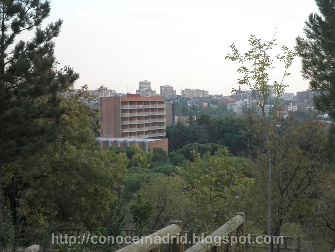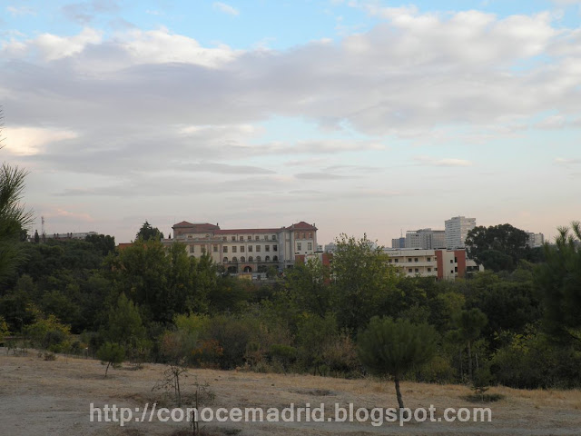 Vista desde el Cerro de las Balas, o de los Locos, del antiguo Colegio de Huérfanos de Ferroviarios construido por Francisco Alonso Martos en 1930, que fue remodelado en 1967. Ampliado hace unos años, actualmente alberga los Órganos de Gobierno y Corporativos de la Asociación CHF y tiene parte cedida a la Universidad Antonio de Nebrija, y otra a la Fundación San Pablo - CEU, a la Residencia de Estudiantes Antonio Gistau y a la Residencia de la 3ª Edad Rafael Alberti.