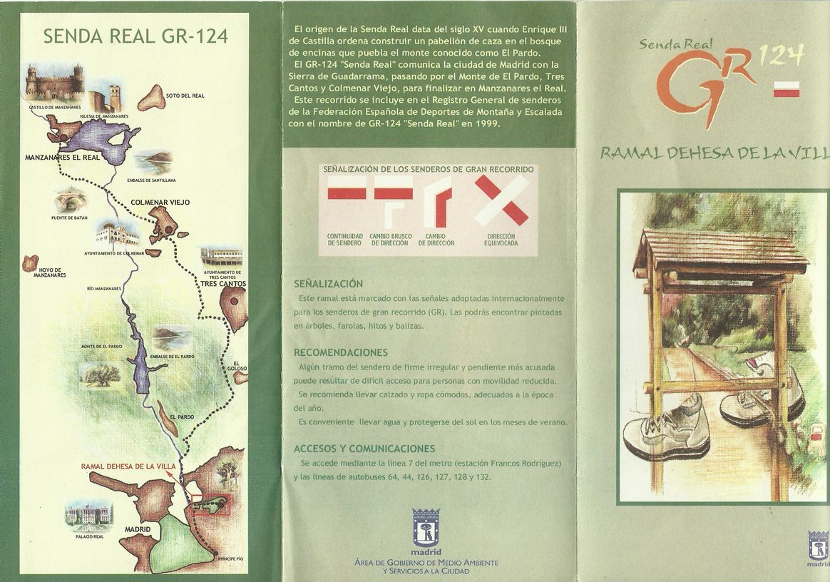El GR-124 "Senda Real" comunica la ciudad de Madrid con la Sierra de Guadarrama, pasando por el Monte de El Pardo, Tres Cantos y Colmenar Viejo, para finalizar en Manzanares el Real.