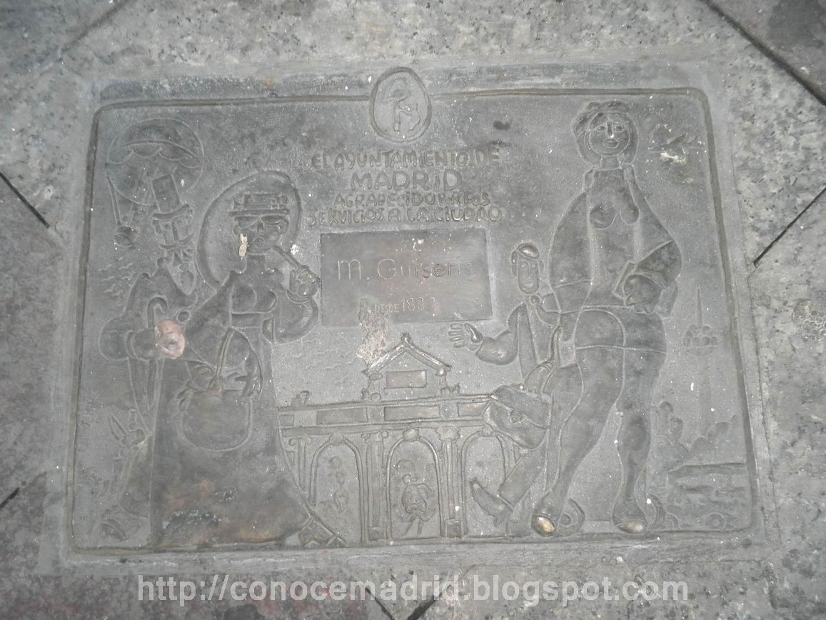 El Ayuntamiento instala una placa de bronce en la vía publica, según diseño de Antonio Mingote, en la que se recoge el nombre del establecimiento, el año en que abrió, y la siguiente mención: "El Ayuntamiento de Madrid agradecido por los servicios a la Ciudad".