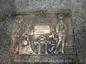 El Ayuntamiento instala una placa de bronce en la vía publica, según diseño de Antonio Mingote, en la que se recoge el nombre del establecimiento, el año en que abrió, y la siguiente mención: "El Ayuntamiento de Madrid agradecido por los servicios a la Ciudad".