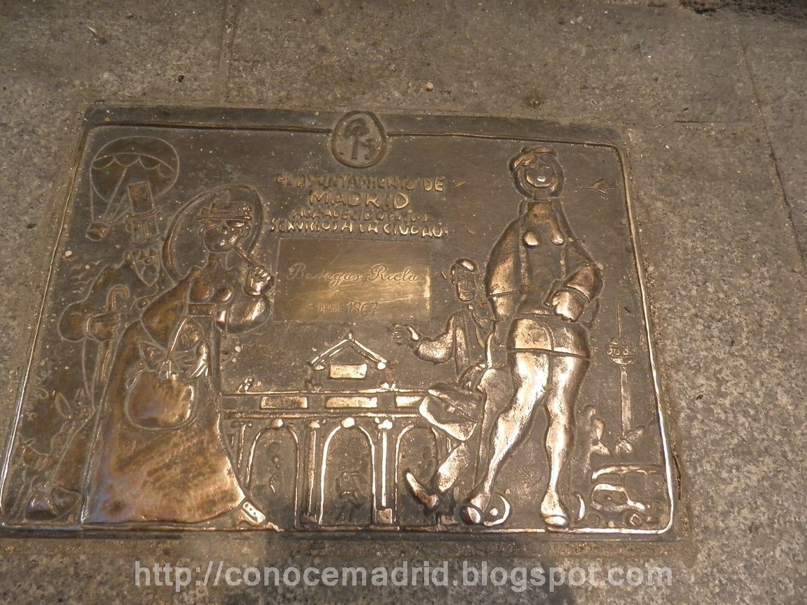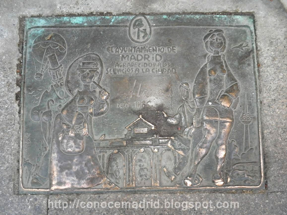 El Ayuntamiento instala una placa de bronce en la vía publica, según diseño de Antonio Mingote, en la que se recoge el nombre del establecimiento, el año en que abrió, y la siguiente mención: "El Ayuntamiento de Madrid agradecido por los servicios a la Ciudad".