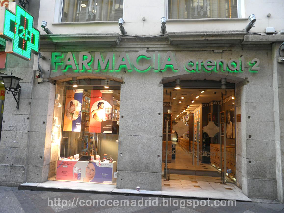 Farmacia Arenal 2, en la calle Arenal, 2. Desde su apertura en 1855, con el nombre de Farmacia Gayoso, ha destacado siempre por ser una farmacia puntera tanto a nivel sanitario (está especializada en la elaboración de Fórmulas Magistrales y Preparados Oficinales) como por el papel que ha jugado en la vida cultural de Madrid.