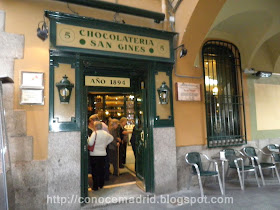 La Chocolatería San Ginés, en el Pasadizo de San Ginés, 11. Situada en uno de los pasadizos más antiguos de Madrid, entre Arenal y Mayor, existía un mesón y hospedería, Lázaro López, que en 1894 es convertido en churrería.