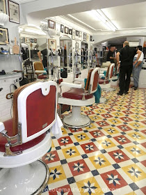 Rafael López y Alfonso Sánchez, actuales dueños y antiguos empleados, conservan la fachada pintada a bandas rojas y azules, al estilo de las peluquerías de antaño, y las sillas de estilo “americano” de metal y rejilla, muy propias.