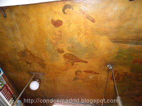 Del local, con sabor decimonónico, destaca la pintura alegórica que adorna su techo, restaurada por el actual boticario.
