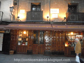 Restaurante Botín, en la calle Cuchilleros, 17 Establecimiento fundado en 1725 y considerado como el restaurante más antiguo del mundo, razón por la cual su nombre figura inscrito en el libro Guiness, donde también se relata que, hacía 1765, trabajó como lavaplatos un joven Francisco de Goya.