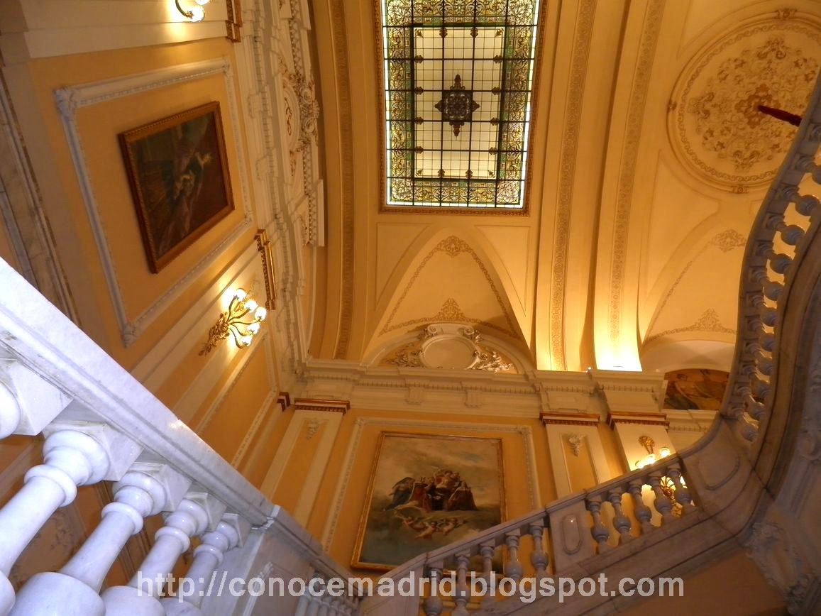 Escalera de Honor. De carácter monumental y principesco, desciende bajo los frescos del techo, pintados por