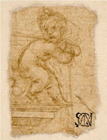 "Putto" sobre una cornisa, Leonardo da Vinci, Milán, Pinacoteca Ambrosiana