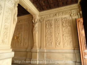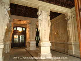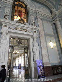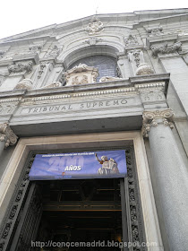 Vestíbulo de entrada por la calle Marqués de la Ensenada, 1. El acceso al interior del Palacio está flanqueado por dos cariátides que, al estilo de las griegas del Partenon, indican al visitante que se encuentra en un lugar "sagrado". Porque allí está en juego lo más preciado para el hombre: su libertad y su patrimonio. Y hasta 1978, tambien la vida. La Constitución abolió la pena de muerte para siempre en España.