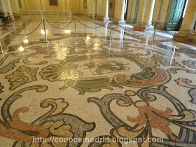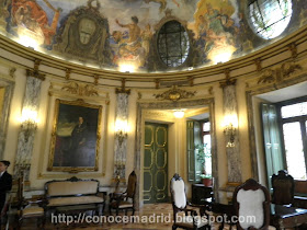 "El collar de la Justicia", fresco del pintor José Garnelo y Alda", en "La Rotonda" el despacho oficial del Presidente. Usado antiguamente como sala de bordado para las novicias, este excepcional recinto pertenecía al palacio en el que pensaba recluirse la reina Doña Bárbara de Braganza.