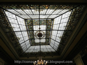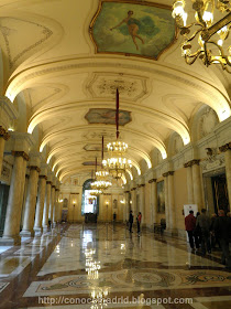 Salón de Pasos Perdidos. Se encuentra en la planta principal. De carácter majestuoso, cuenta con altas columnas jónicas y un techo en bóveda, en el que destacan pinturas alusivas a las virtudes de la Justicia, "la verdad", "el progreso", "la riqueza" y "el delito", realizadas por Álvaro Alcalá Galiano.
