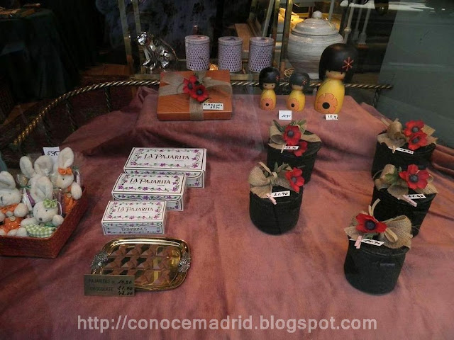 La Pajarita en la calle Villanueva, 14. Fundada en 1852 en la Puerta del Sol, con el obrador bajo la tienda, por el bisabuelo del actual dueño. En 1969 se abre la sucursal de la calle Villanueva, frente al Museo Arqueológico y la Biblioteca Nacional. Actualmente es el único local que queda. Debe su nombre a la afición de los contertulios que frecuentaban los cafés de la época, entre otros Miguel de Unamuno, a realizar pajaritas con servilletas de papel. Sus productos, caramelos de dieciséis sabores y bombones, son artesanales. Tal era su fama que llegó incluso a dar nombre en 1913 a la protagonista de una zarzuela, publicada por Casa Dotesio, tan melosa y finolis que se pone de mote el nombre de la más famosa dulcería de Madrid.