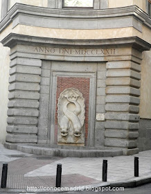 Fuente de San Antón. Recibe su nombre por estar adosada a uno de los chaflanes de la fachada del colegio del mismo nombre, aunque es conocida también como fuente de los Galápagos o de los Delfines. Su traza está fechada en 1770 y firmada por Ventura Rodríguez, sustituida por la actual hacia 1900, reemplazando las antiguas tortugas por los actuales delfines. Se procedió a su restauración en 1995 debido a su deterioro por la contaminación ambiental.