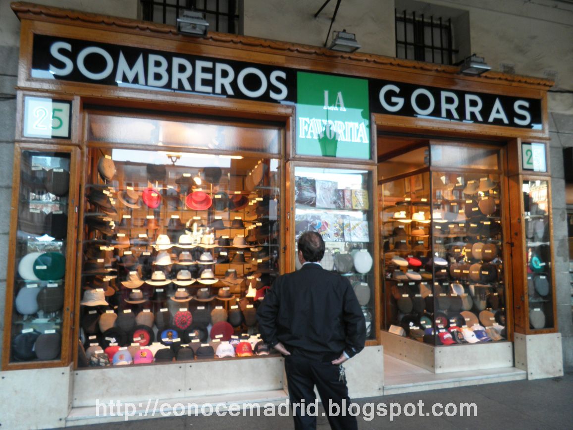 El sombrero, en invierno y el “canotier o panamá”, en verano, era prenda necesaria para el caballero, sobre todo en el Madrid decimonónico. Dedicada a la venta de chisteras, bombines, sombreros de fieltro o gorras de punto, ha introducido, como otras tiendas de la Plaza Mayor, otros objetos como artículos de regalo, botas de vino (de las ZZZ), camisetas, bufandas, llaveros, abanicos, dedales, etc.