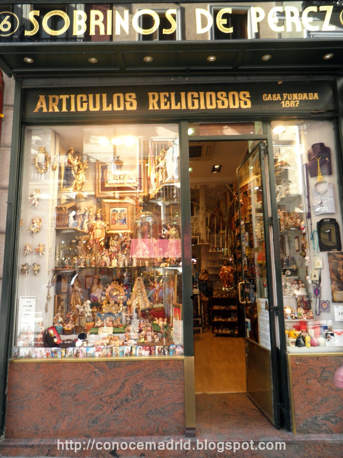 Sobrinos de Pérez en la calle Postas, 6. El local de la calle Postas se dedica desde su origen al sector textil, sobre todo de tipo religioso. Al final, la tienda se especializa en la venta de artículos religiosos de todo tipo: hábitos, figuras o cualquier otro objeto de culto.