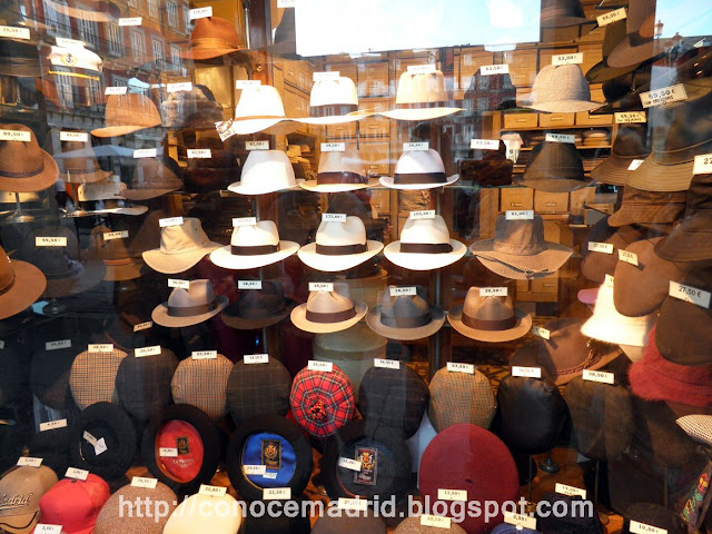 El sombrero, en invierno y el “canotier o panamá”, en verano, era prenda necesaria para el caballero, sobre todo en el Madrid decimonónico. Dedicada a la venta de chisteras, bombines, sombreros de fieltro o gorras de punto, ha introducido, como otras tiendas de la Plaza Mayor, otros objetos como artículos de regalo, botas de vino (de las ZZZ), camisetas, bufandas, llaveros, abanicos, dedales, etc.