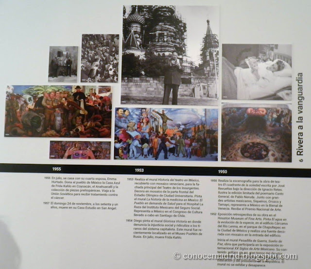 Después de su estancia europea -de 1909 a 1921- su regreso a México, Rivera articuló el muralismo mexicano, primera vanguardia americana en la que el campesino se convierte en héroe de la historia. Los más de 8.000 metros cuadrados de pintura mural son -al día de hoy- referente de nuestra identidad nacional. En ellos plasmó temas sociales e históricos logrando una epopeya del pueblo mexicano; combinó con maestría el dibujo, la perspectiva y el color, obteniendo efectos de gran impacto y belleza.