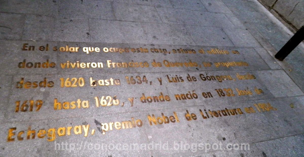 Texto de la novela "Misericordia" de Benito Pérez Galdós, en la calzada de la calle Huertas.