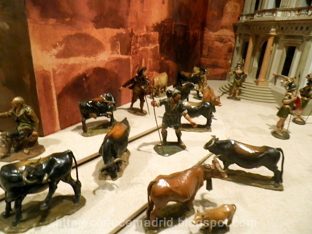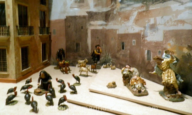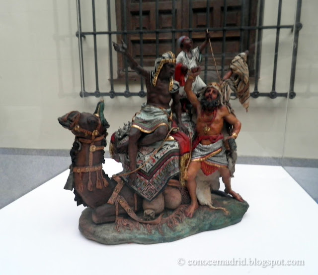 Se exhiben 297 piezas, incluidas las arquitecturas, una selección del total de 556 que forman el conjunto completo. Las figuras tienen un tamaño de unos treinta centímetros y están modeladas en arcilla pero también las hay en madera.