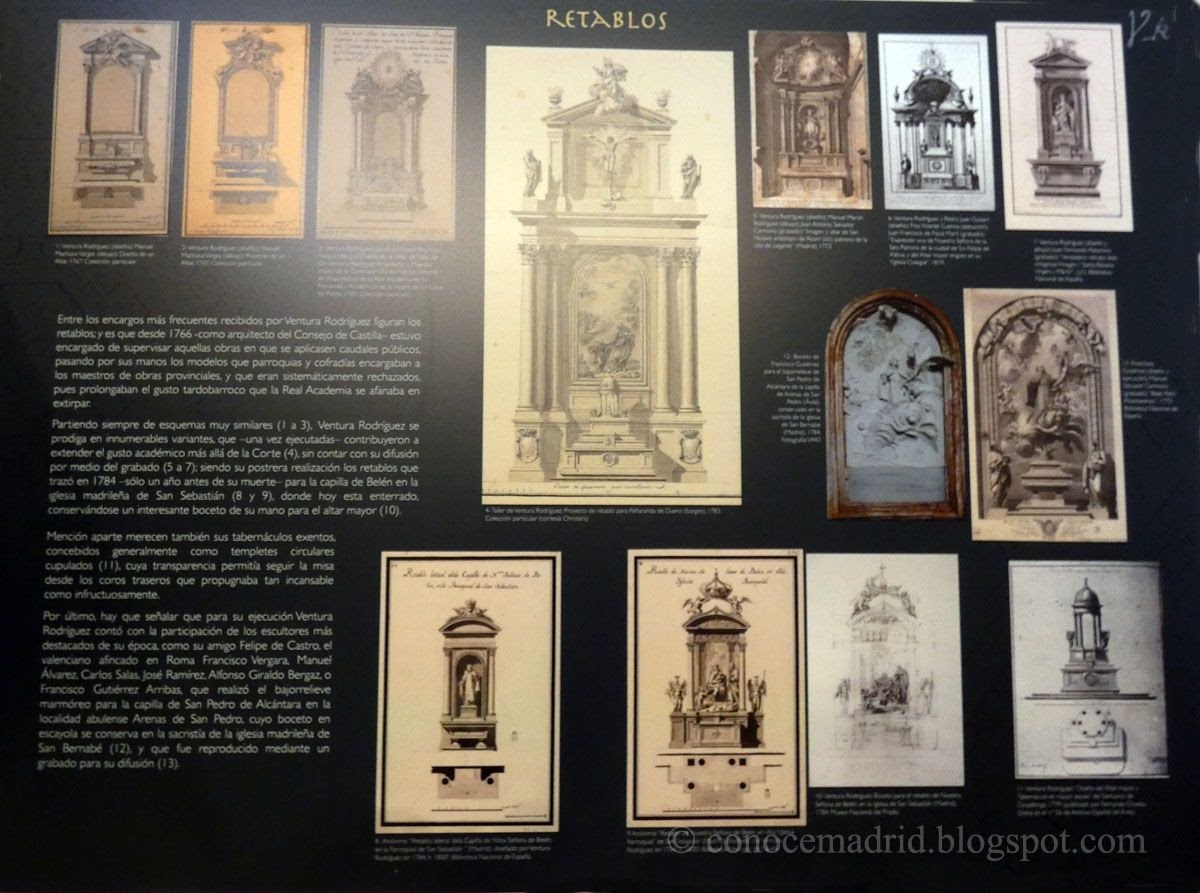 Pueden conocerse sus creaciones más representativas en arquitectura religiosa y civil así como en urbanismo, ingeniería, obras públicas -incluyendo algunas de sus emblemáticas fuentes como las de Cibeles o Neptuno-, decoración e incluso el mobiliario. Todo ello estará representado mediante planos y dibujos originales, cuadros, muebles, publicaciones históricas, grabados, modelos y paneles. Además se incluye una curiosa colección de instrumentos históricos que ofrecen una visión inusual sobre las técnicas de dibujo del siglo XVIII.