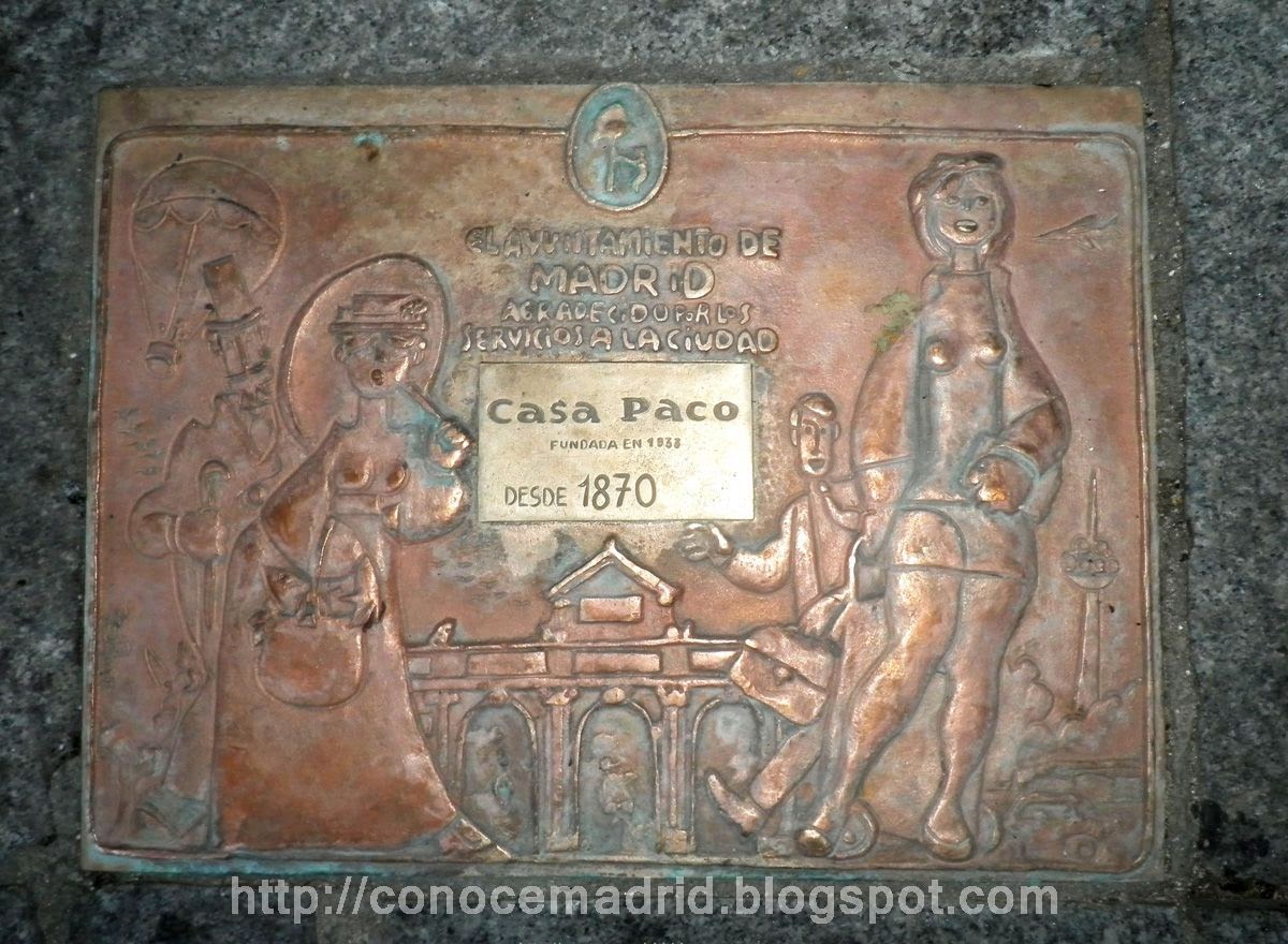 Visitantes famosos: Ava Gardner, Ernest Hemingway, Samuel Bronston, Palomo Linares, Conchita Montes, Francisco Rabal, Fernando Fernán Gomez... Cerró durante la Guerra Civil y tras la contienda se comenzó a servir el cocido en pucheros individuales a 25 céntimos, tradición que ha llegado a la actualidad: los martes hay cocido en Casa Paco, célebre además por la carne a la francesa servida sobre piedra caliente.