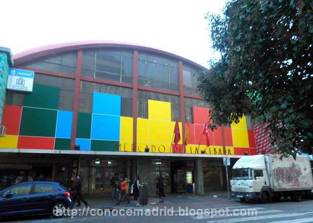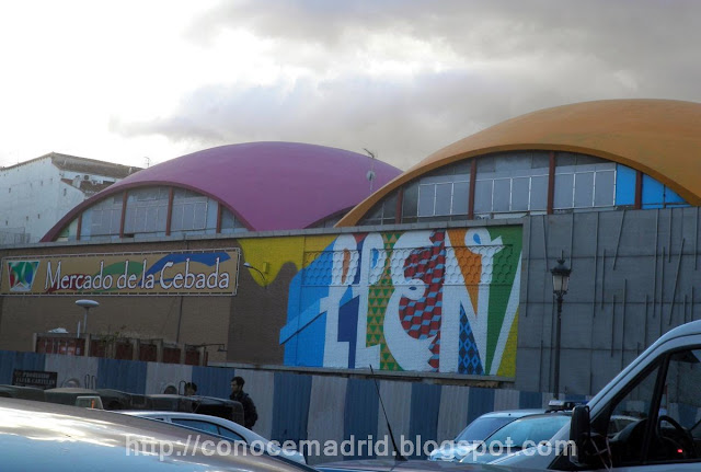 El nuevo look del Mercado de la Cebada se debe al colectivo artístico Boamistura, que pintó las cúpulas cada una de un color llamativo diferente. Dos de las fachadas del edificio también han sido intervenidas, contagiándose de esos colores de las cúbiertas.