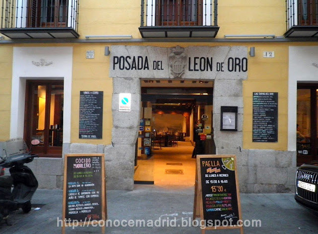 Calle Cava Baja, 12 Posada del Leon de Oro Data de 1893 y fue posada para aventureros, espadachines, comerciantes y enigmáticos personajes. Ahora este edificio totalmente reformado es un hotel.